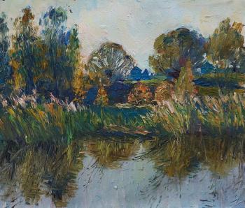Мельников Александр. Октябрь. У заросшего пруда солнечным утром (Картина Заросший Пруд)