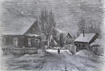 Лемехов Игорь. Зимняя улочка (Картина Зимняя Деревня)