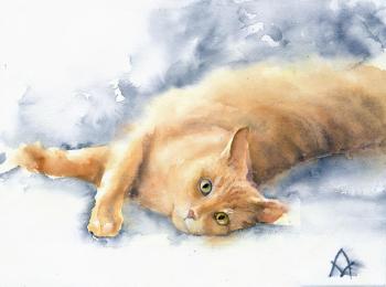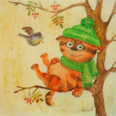 Сухова Наталья. Открытки с котиками. Коты. Новый год. Рыжий кот (Рыжий Кот Картина)