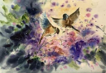 Скромова Марина. Птицы в цветущем саду (Влюбленные Птицы)